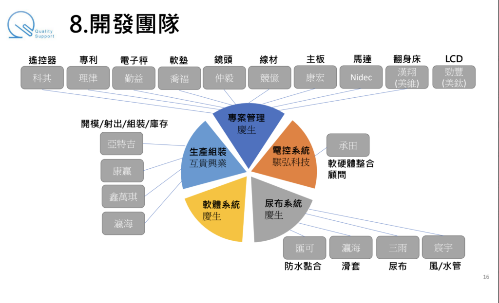 慶生的堅強團隊和許多頂尖的國際廠商合作。合作夥伴包含日本Nidec、漢翔航空及騏弘科技等多家頂尖國內外廠商。